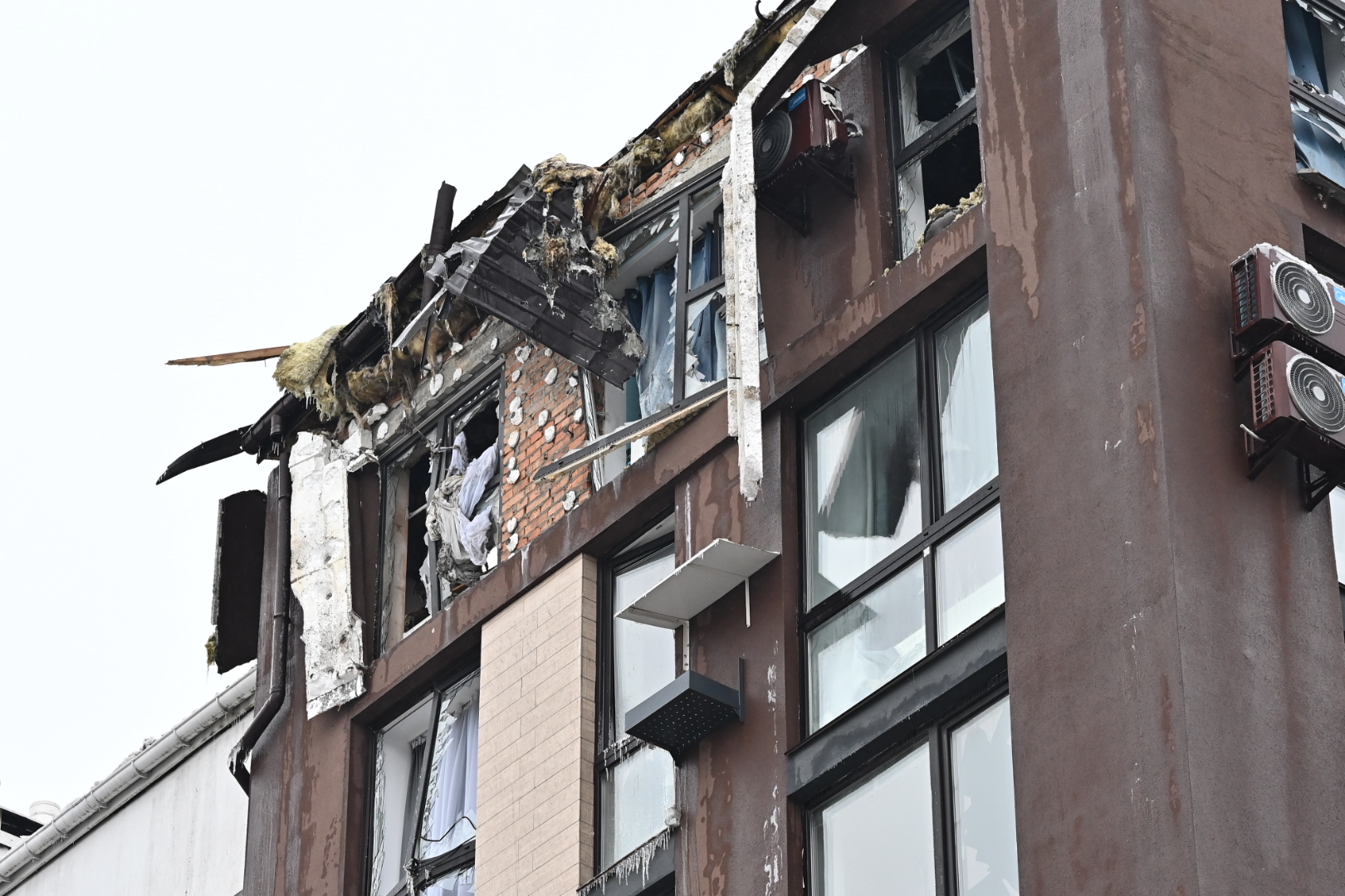 У будинку загорілася покрівля та квартира на верхньому поверсі. Пожежу вже ліквідовано силами ДСНС. За попередніми даними, пошкоджень різного ступеня зазнали близько 50 квартир: від вибитого скла до повного руйнування осель.