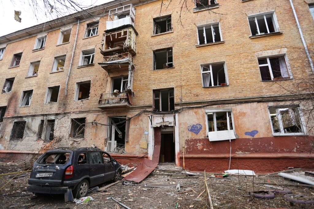 A Russian attack drone struck a residential area in the center of Chernihiv, Ukraine
