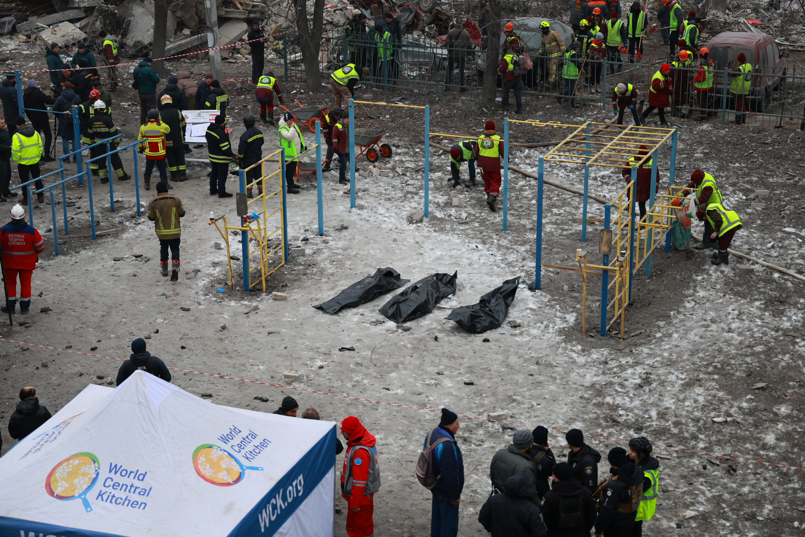 The Russian strike damaged 19 apartment buildings, a school, and several shopping pavilions. Rescuers from the State Emergency Service of Ukraine are continuing to clear the rubble at the impact site, as people may still be trapped beneath the debris.